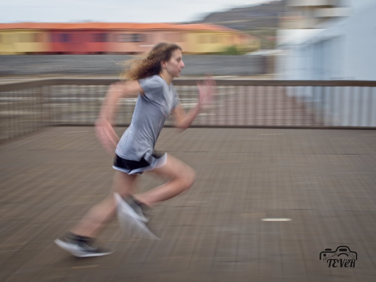 Durante las prácticas y a modo de ilustración hicimos un par de fotos a la alumna mas joven que se prestó de modelo, para enseñarles a los alumnos algo de la composición y de como se hace un panning o barrido.