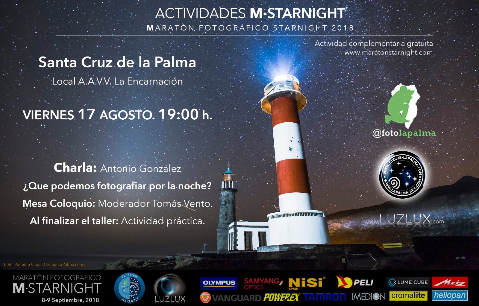 - Una charla: ¿Quí© podemos fotografiar por la noche? que nos impartirá Antonio González Hernández (Toño González, el hombre de las estrellas)