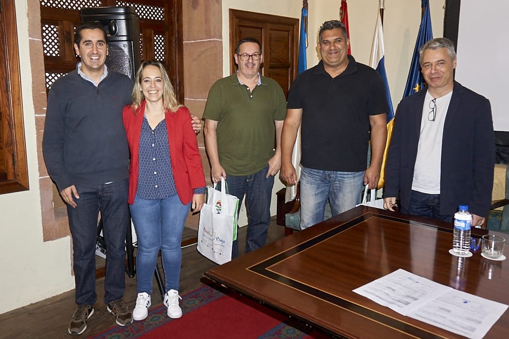 La representante del Cabildo Insular de La Palma, Dª. Susana Machín Rodríguez, y el Sr. Alcalde de Breña Baja, D. Borja Pí©rez Sicilia, hacen entrega de recuerdos a los miembros de AFOS que nos acompañaron como miembros de la Junta Directiva en el Acto Fundacional de la FFC.