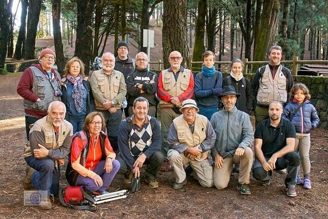 Nos encontramos en la zona recreativa de El Refugio de El Pilar (El Paso) a las 09.30 horas unas 16 personas, luego se agregaron algunos más, echamos de menos a algunos socios habituales en estas KDD, pero que por viajes o compromisos laborales, familiares o de exámenes no nos pudieron acompañar en esta ocasión, otra vez será. Tras la foto de rigor iniciamos un recorrido a pie, cual safari fotográfico, por los entornos de la zona y sobre todo por la hilera de la Cumbre de Breña Alta.