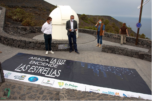 En la mañana de ayer, 15-9-2020, en el centro de visitantes del volcán de San Antonio, se ha realizado la presentación de la instalación de lonas “APAGA LA LUZ Y ENCIENDE LAS ESTRELLAS†dentro del marco del festival de AstroFest que tiene como objetivo promocionar el Astroturismo y posicionar a la isla como referencia internacional. Las lonas tendrán unas dimensiones de (4X2) metros y serán expuestas en todos los municipios de la isla.Â
