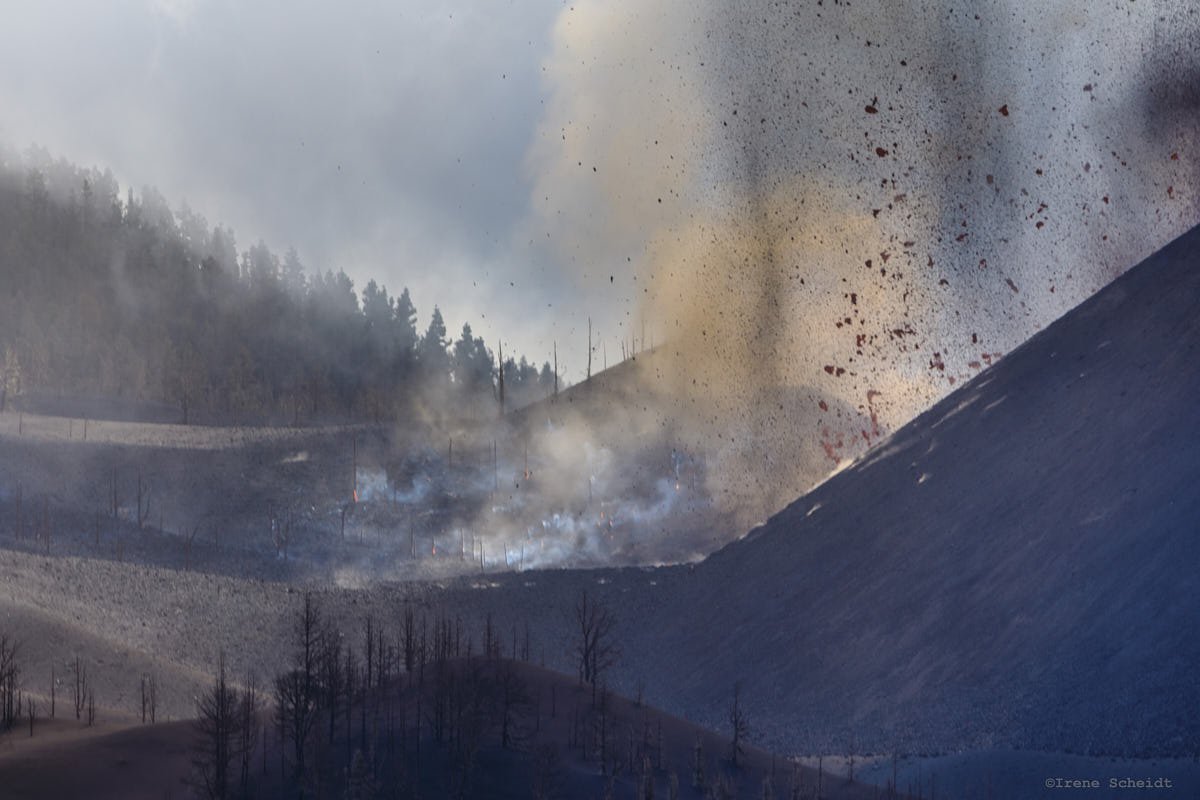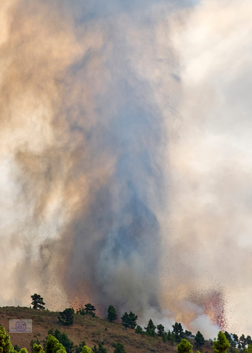 Las obras fotográficas van desde la nº 1 una foto del Valle de Aridane 26 horas antes de la erupción, hasta fotos mas actuales con el volcán ya apagado. El orden de las fotos es siguiendo un orden cronológico de la erupción