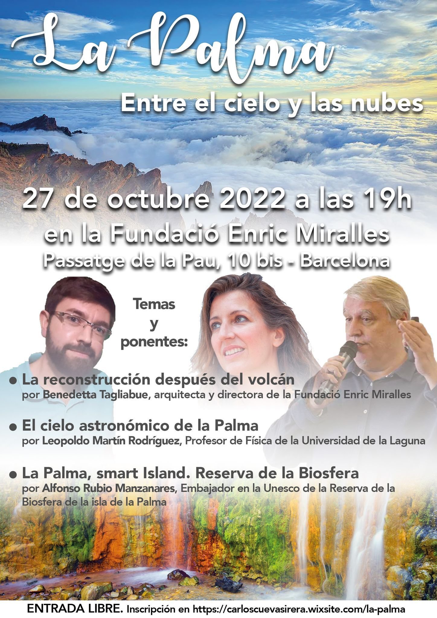 Próximo 27 de octubre, jueves, en el Passatge de la Pau, 10bis de Barcelona a las 19.00 horas 3 temas muy importantes relacionados con la isla de La Palma, y a cargo de ponentes de dilatada experiencia en los temas a tratar y bajo el auspicio de la Fundació Enric Miralles.