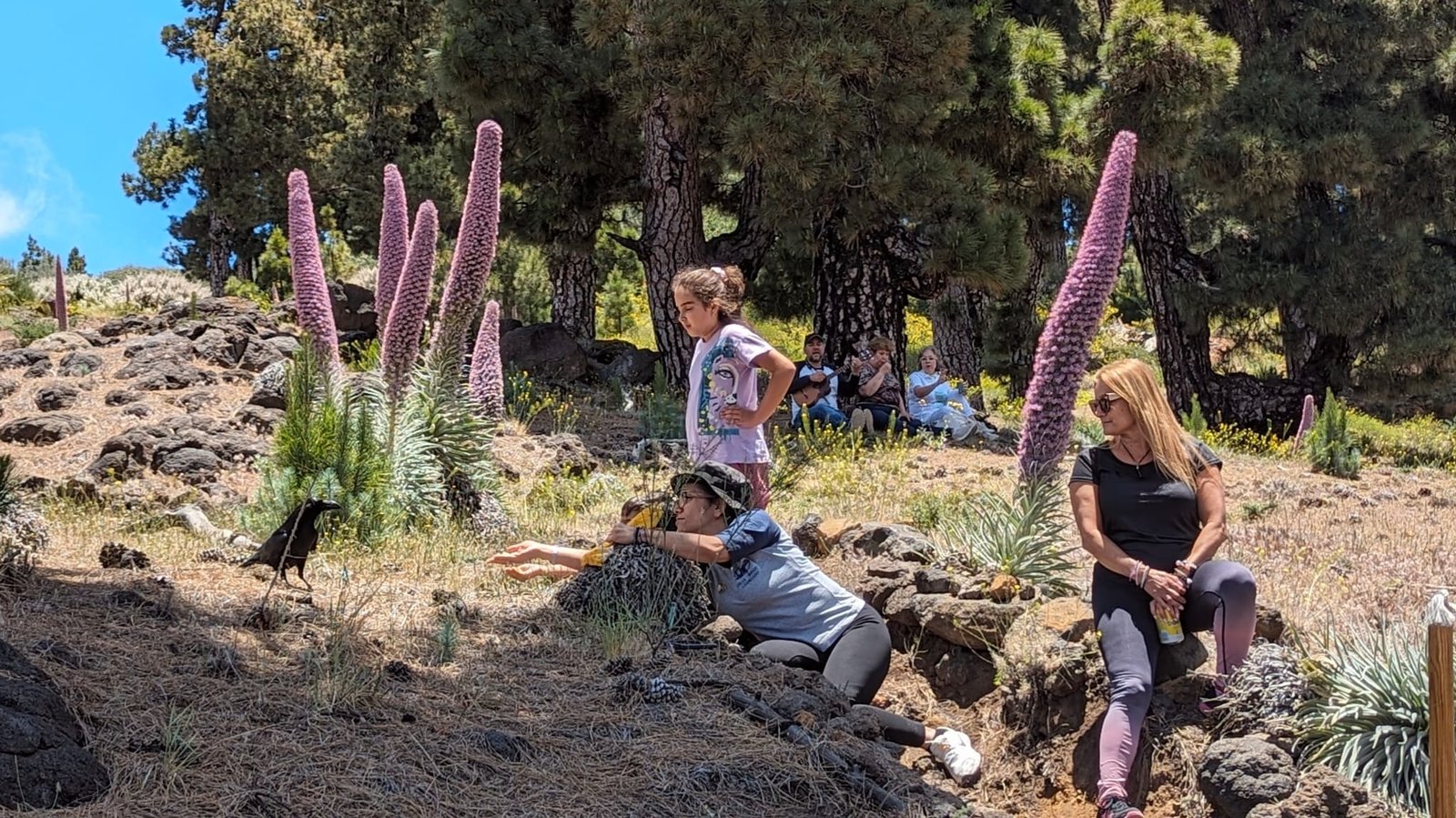 Continuamos la bajada hacia los tajinastes por debajo del Centro de Visitantes, en la bajada hacia Garafía. Estuvimos en la zona de los tajinastes escasamente media hora para hacer algunas fotos, y fue ahí donde nos visitó un cuervo, el íºnico que vimos.
